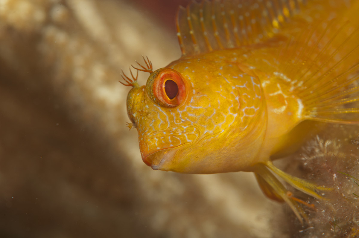 E dietro al Thalassoma altri animali amanti del caldo stanno risalendo lungo la penisola, pesci balestra, barracuda, pesci pappagallo, lo scorfano di Madera, qualcuno riconoscibile solo dagli specialisti, altri facili da individuare. Ai primi appartiene la bavosa africana, Parablennius pilicornis, dalla livrea che si presta a confusioni con altre specie, la cui espansione verso nord è stata velocissima negli ultimi anni. Quella delle foto è la bavosa africana, si riconosce per il disegno a ido d’ape che adorna sempre le guance, in tutte le forme cromatiche.