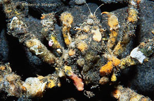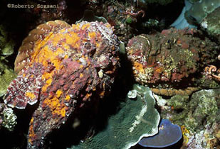 Il pesce pietra si nasconde tra le rocce in modo stupefacente. A volte non si riesce a scorgerlo neppure da pochi centimetri. (Foto Roberto Sozzani) |