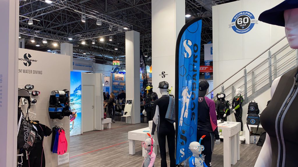 Parte del padiglione 12 e del padiglione 13 erano riservati all’industria della subacquea che, rispetto alle fiere precedenti, ha registrato una minore partecipazione nel numero di espositori, con l’assenza di alcuni noti brand. In particolare, la nuova piscina nel padiglione 12 ha attirato molta attenzione ed è stato molto rincuorante vedere decine di persone che hanno colto l’opportunità di provare attrezzatura subacquea o semplicemente provato a respirare sottacqua. Interessante anche la forte presenza di sirene e dimostrazioni di attività legate alla conservazione dell’ambiente, come la rimozione delle reti da pesca. Le agenzie didattiche più importanti, prime tra tutte PADI, erano presenti con stand ben curati che ospitavano sia la rappresentanza dei brand, che gli operatori affiliati.