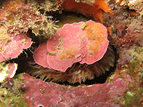 Un anfratto con un anemone di mare che si nasconde con quest’ alga addosso che gli fa da copertura. Che peccato sarebbe stato bello vederlo scoperto.