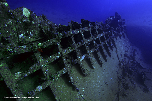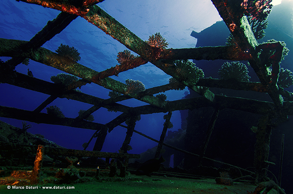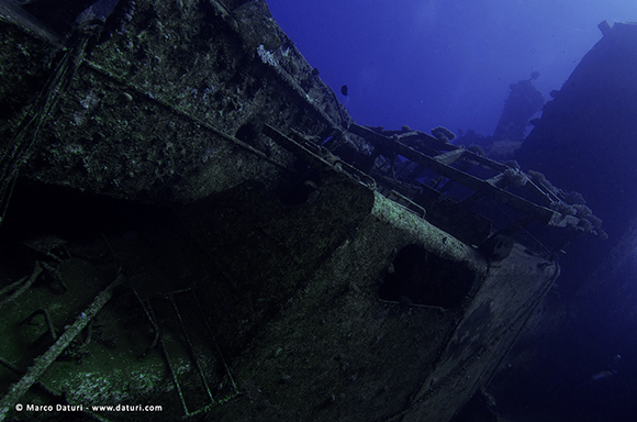 Il relitto è talmente grande che è praticamente impossibile averne una visione di insieme ma si gira con facilità in ampi spazi, sempre in sicurezza. A sorprendere, come spesso accade, è la vita che viene riportata dal mare al relitto stesso, colonizzato da coralli e abitato da centinaia di specie di