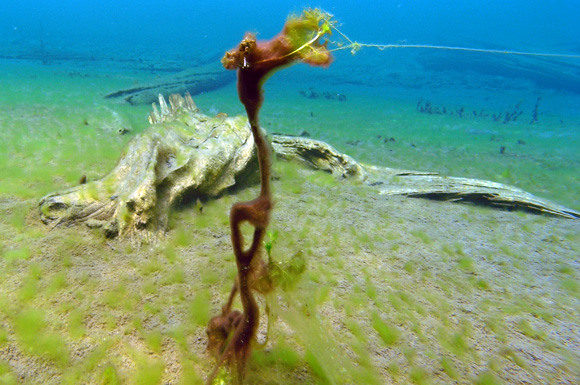 Sott’acqua il paesaggio è surreale con le alghe che salgono dal fondale e numerosi tronchi ormai fossilizzati dal freddo. Un’immersione molto piacevole e quasi unica per tutto il contesto in cui viene svolta che è bene godersi con calma senza ricercare qualcosa in particolare ma pinneggiando lentamente in questo gelido splendido scenario godendosi l’ambiente oppure ricercando un contatto con la principessa Tresenga, avvistata recentemente a cavallo dell’orso bruno… ma questa è un’altra storia.