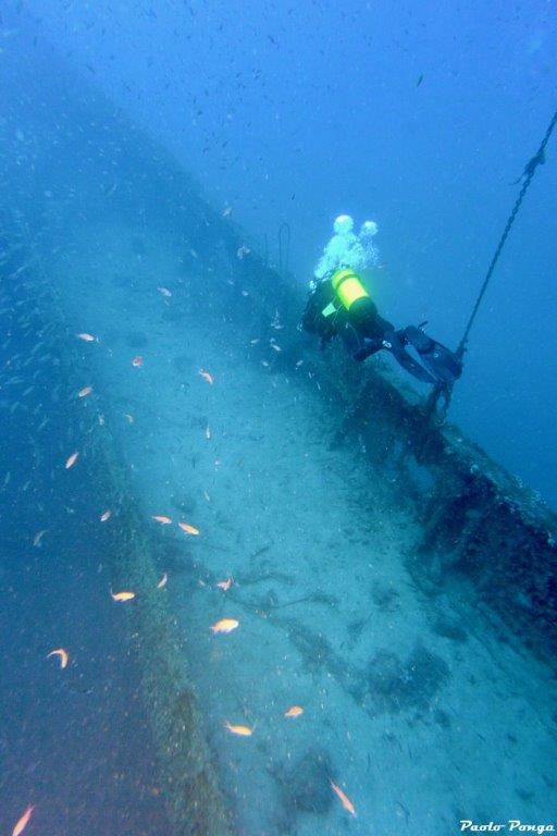 L’immersione è purtroppo breve, a causa della profondità che mi costringerà ad una ventina di minuti di decompressione. Chissà, magari la prossima volta riuscirò anche a fare un bello scatto della splendida poppa del Tiflys, come non riesco a smettere di chiamarlo.