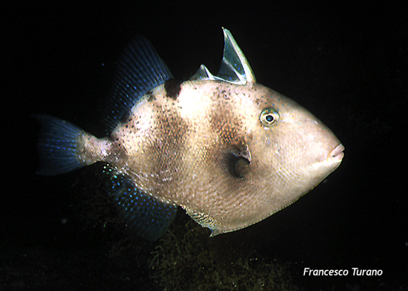 Sotto il galleggiante, invece, sono nate le alghe e, in quella poca ombra, danzano un gruppetto di giovani carangidi, allegri e veloci come sempre, affettuosi tanto da saltarti addosso (in realtà sono mossi da un’irresistibile curiosità). La vita nel mare, anche in poco spazio, cerca di farcela. Una dimensione autunnale pacata ha già preso il sopravvento e, sotto un vecchio canotto abbandonato, dei pesci più scuri cercano di rifugiarsi da tutto e da tutti: sono giovani e bellissimi pesci balestra, sono i piccoli che da poco hanno iniziato la loro avventura in Mediterraneo, cercando scampo all’ombra di oggetti galleggianti traspostati da onde e correnti. La loro livrea è stupenda: i più piccoli sono scurissimi mentre quelli che hanno il diametro di una moneta da un euro hanno già un fitto reticolo di macchie e linee azzurre, su tinta di fondo ora marrone scuro ora grigia, secondo lo stato emotivo. Che meraviglia osservare i giovani balestra e i giovani carangidi: la loro ingenuità e la loro ancora scarsa esperienza mi fa pensare al gioco: si, sembra quasi che, come cuccioli, stiano giocando, completamente ignari del pericolo, completamente ignari della loro sorte che spesso li rende facili prede. Ma alcuni di loro ce la faranno e diventeranno adulti.