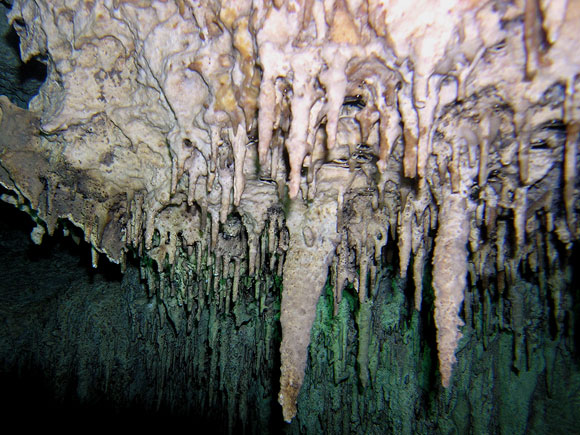 Seguiamo la guida nell’oscurità tra passaggi sempre molto facili e accessibili, stando solo attenti a non pinneggiare sul fondo per non alzare sospensione. Il cenote è un gioco di luci, stalactiti e stalagmiti.