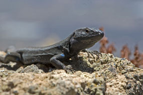 del loro meglio per ricostituire la specie. Più comune anche allo stato selvatico la lucertola herreña (Gallotia caesaris caesaris), nera a macchie azzurre.