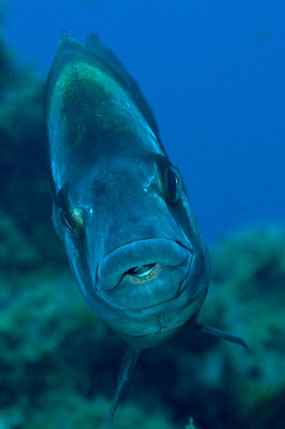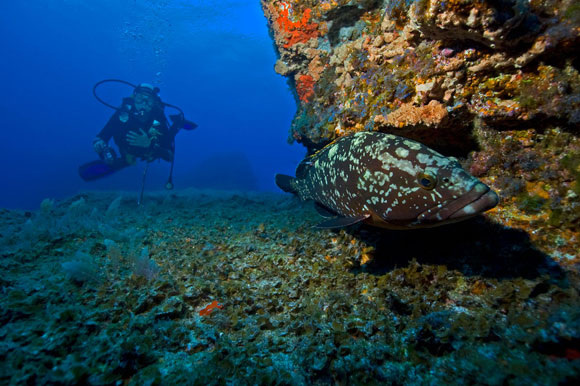 La cernia (Epinephelus marginatus) nella riserva è molto confidente con il