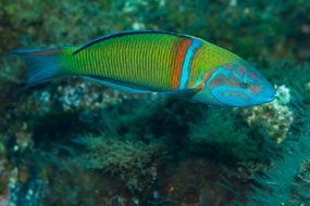 Tra i pesci è onnipresente una vecchia conoscenza del subacqueo mediterraneo, la invadente e sfrontata donzella pavonina (Thalassoma pavo). Un altro elemento caratteristico è il pesce pappagallo (Sparisoma cretense), la