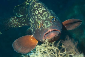 Tra i serranidi, la cernia Epinephelus marginatus, tipica del
