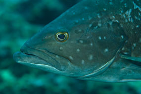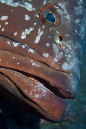 A destra: Epinephelus marginatus, la cernia presente anche in Mediterraneo.