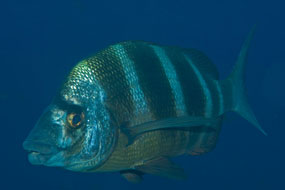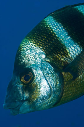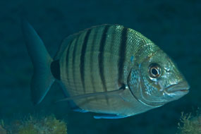 A destra: Diplodus sargus cadenati è la varietà di sarago maggiore presente in