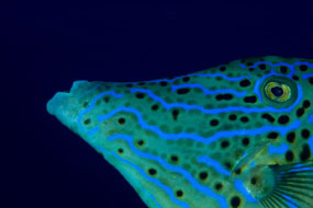 A destra: Il pesce lima scarabocchiato Aluterus scriptus, cosmopolita di acque