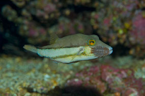 A sinistra: Canthigaster capistrata, piccolo pesce palla, con un vistoso