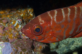 A sinistra: La cernia Mycteroperca fusca, tipica di queste zone.
