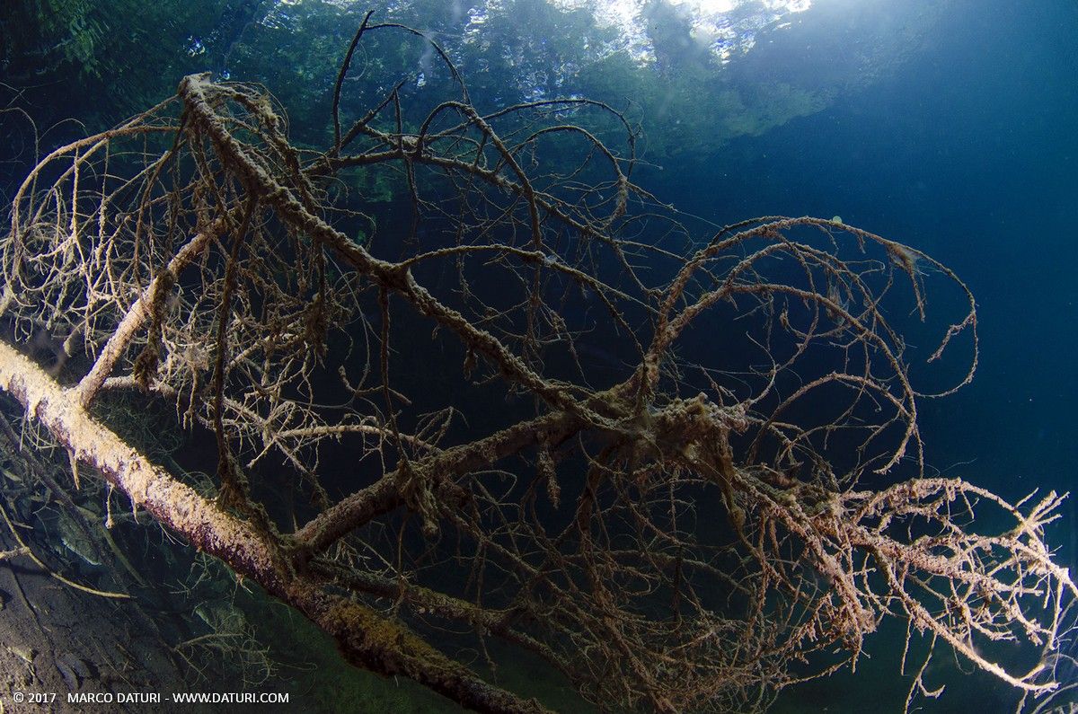In alcuni punti moltissimi tronchi giacciono sul fondale, quasi fossilizzati. Molto particolare lo scenario, quasi lunare lontano dalla riva. I pesci nuotano quasi indisturbati e si fanno avvicinare.