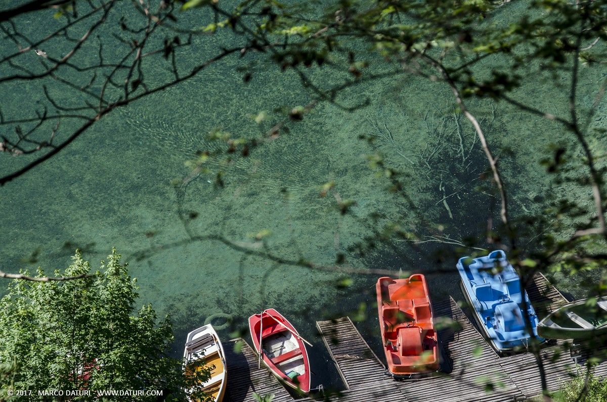Il primo punto di ingresso al lago, più vicino all’hotel, è proprio sotto alla struttura dove sono ormeggiati anche alcuni pedalò e piccole imbarcazioni a remi.