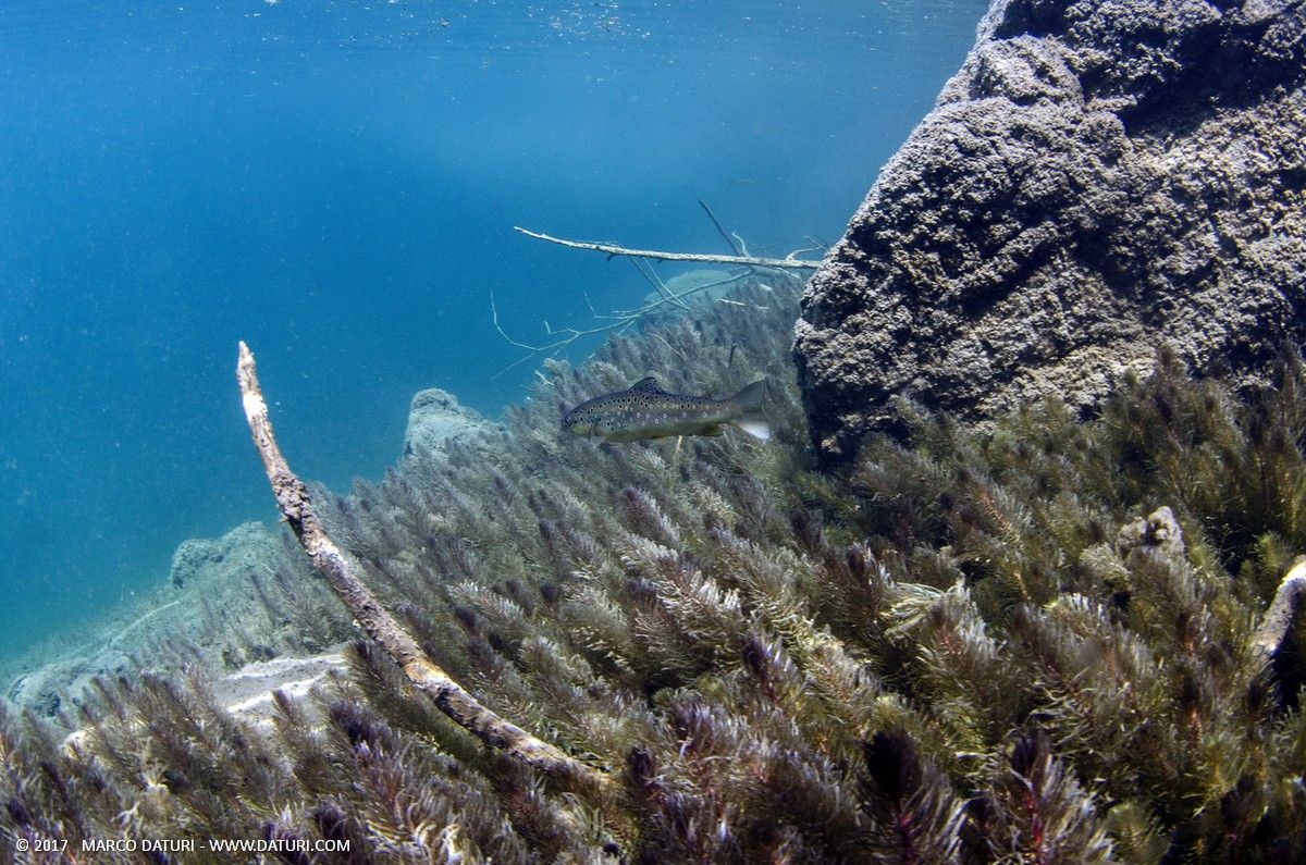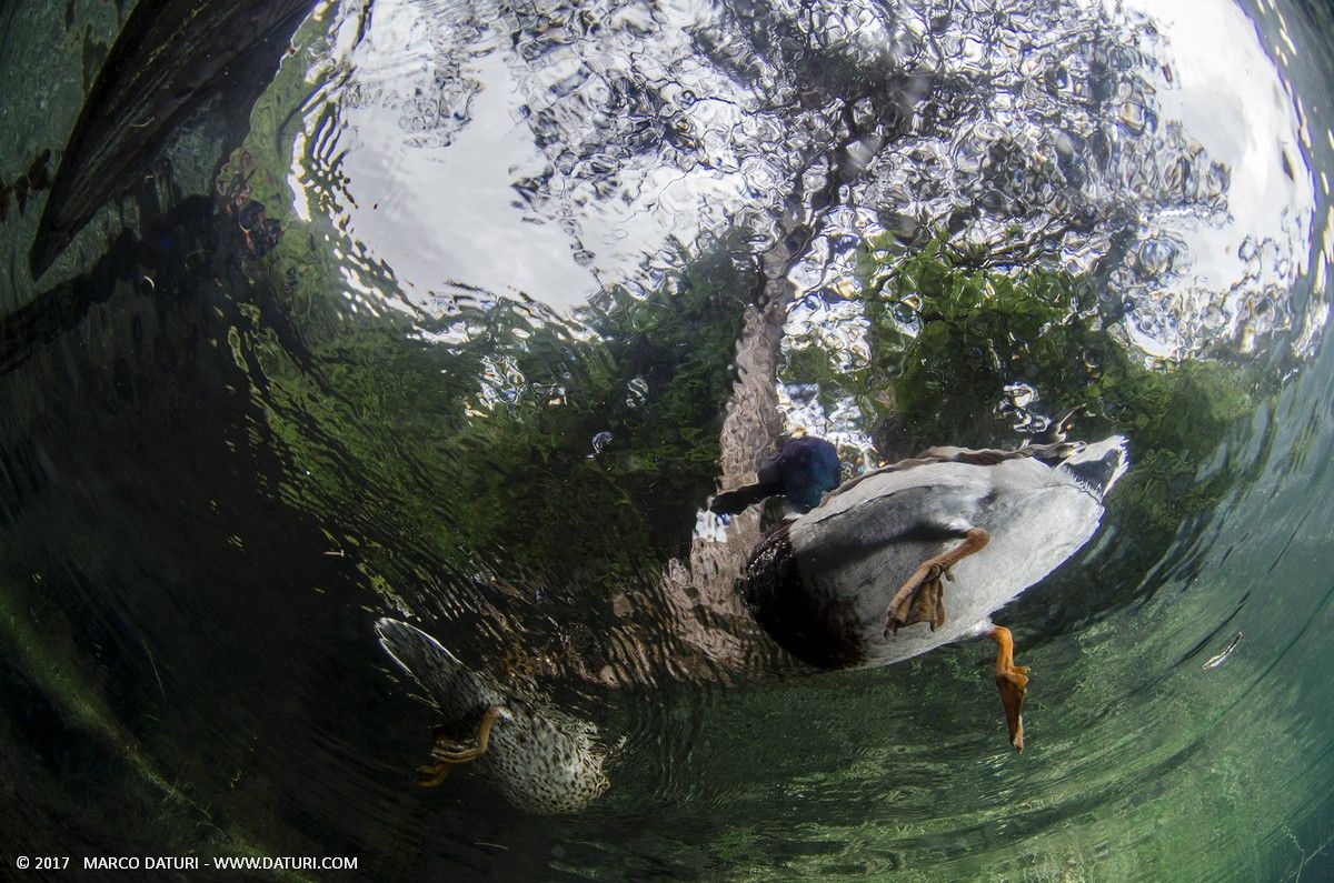 Sulla superficie nuotano sopra di noi anatre e cigni, quasi incuriositi dalla nostra presenza.
