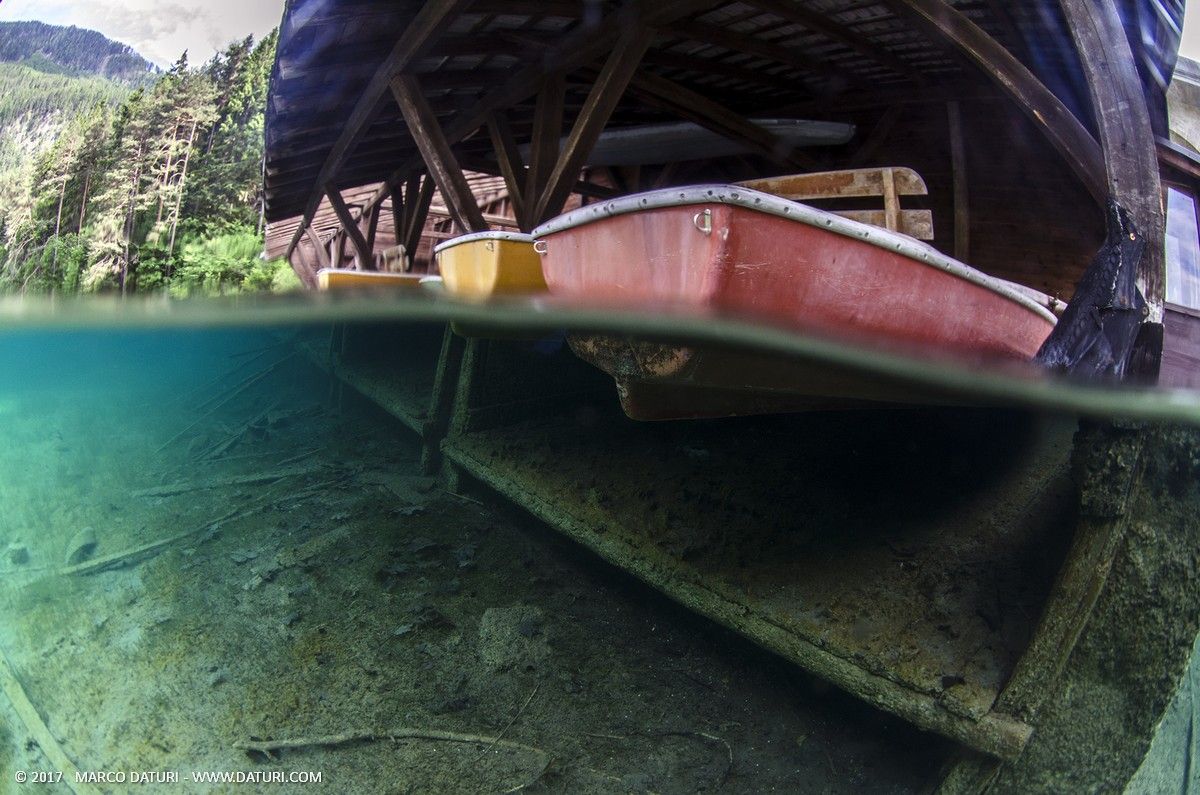 L’acqua è forse ancora più cristallina del Fernsteinsee e la visibilità è veramente eccezionale. Sempre più interessante la parte sotto costa dove sono immerse decine di tronchi e dove da sotto si vedono riflessi alberi e montagne.