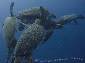 Non hai mai visto le tartarughe??? Le vuoi incontrare??, Toccare?? Baciarle??? Allora Sipadan fa per te!! Non c’è stata una immersione durante la quale non ne abbia visto almeno 20. Tra Aprile e Settembre vengono a Sipadan per accoppiarsi e deporre le uova sulle bianche spiagge dell’isola. I soldati stazionati sull’’isola probabilmente raccolgono le uova e le mettono in un recinto per assicurare una buona crescita. Ho contato un centinaio di nidi nel recinto. Se sei fortunato e lo siamo stati puoi assistere live a un’orgia subacquea di tartarughe. Una coppia in piena intimità che facevano I cavoli loro sono stati assaliti da 8/10 maschi molto arrapati e desiderosi ad avere anche loro i loro piacere.. Non c’è stato comunque morso alla coda, pinna, fallo o spinta che potesse separare i due. Erano veramente innamorati.