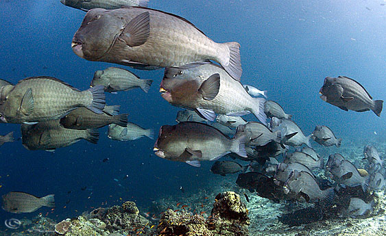 Spesso la prima immersione si faceva a Barracuda Point per cercare oltre agli squali anche, come lo dice il nome stesso, il mega branco di Barracuda. E’ stata una esperienza veramente eccezionale poter nuotare in mezzo a centinaia e centinaia di barracuda, certi oltre il metro di lunghezza. Purtroppo non mi hanno mai fatto il cerchio perfetto sopra di me ma nuotare lì con loro era veramente uno SPASSO.