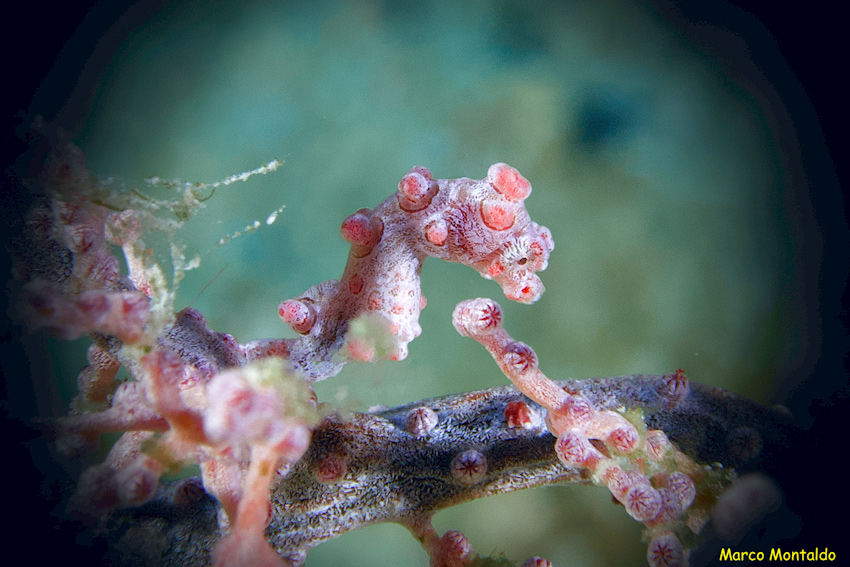 Il primo, nascosto in una gorgonia è un cavalluccio di mare pigmeo Bargibanti (Hippocampus Bargibanti) che adatta il suo colore al corallo che lo ospita: ci vogliono degli occhi molto allenati per trovarlo, per fortuna la nostra esperta guida è bravissima e dopo il primo ne trova altri tre su diverse gorgonie.