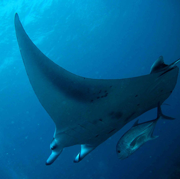 casa, ci fa scorgere una piccola mobula in mezzo alle mante.