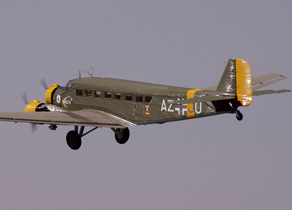 bianco sotto le ali, la croce uncinata sul timone di coda e gli enormi flaps