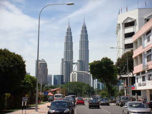 La città, le strade trafficate, il clima…tutto sembra surreale per noi e i nostri occhi continuano a scrutare il cielo in cerca delle Petronas Towers mentre il tassista di origine cinese ci da il benvenuto in un inglese comunque chiaro e comprensibile . Arrivati al nostro hotel (soli 29 euro a testa per notte) , confermiamo quello che avevamo visto e provato in altre strutture ricettive in Asia …. la qualità , il lusso rapportato al prezzo pagato in questi alberghi 5 stelle sbaragliano qualsiasi concorrenza . In 5 minuti a piedi arriviamo alle torri Petronas , meraviglioso esempio architettonico che in un paese fortemente islamico lascia pensare a come lo Stato proprietario di maggioranza della catena petrolifera Petronas si sia lasciato trasportare in questo fastoso stile occidentale nel costruire il simbolo o almeno uno dei simboli di Kuala Lumpur. Al suo interno il SURIA un centro commerciale meraviglioso e ben fornito dai migliori negozi internazionali e non, dove si può mangiare e …incominciare a far pratica sugli acquisti in Malesia .
