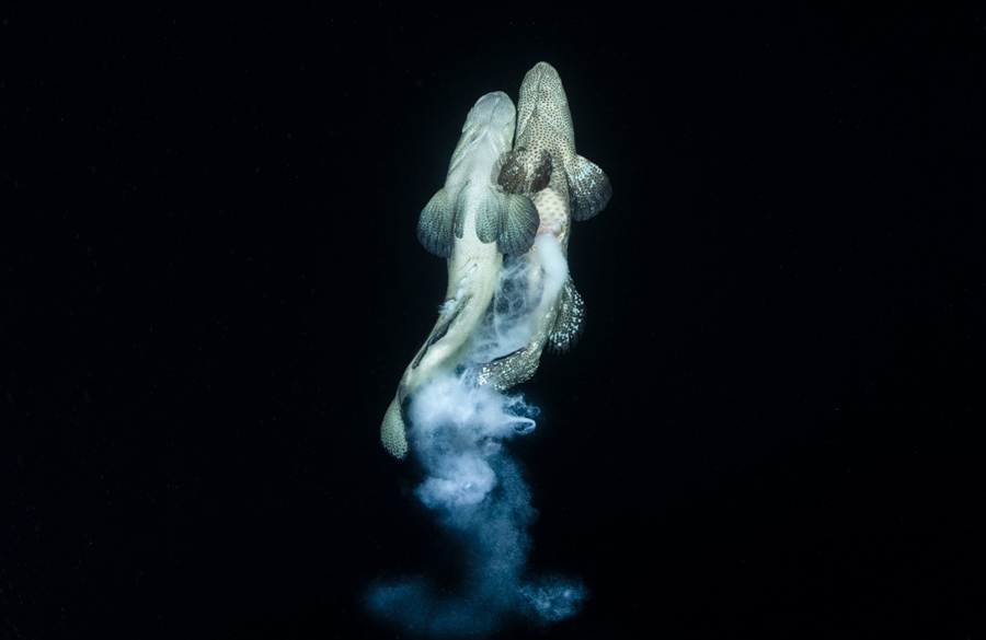 r) A Palau si può assistere a questo straordinario fenomeno chiamato spawning. Tre giorni prima della luna piena e tre giorni prima della luna nuova, i red snappers nel primo caso ed i humphead nel secondo, si riuniscono in branchi composti da oltre 8000 pesci e aspettano il cambio delle correnti per rilasciare migliaia di uova. Come spesso accade in natura, un assembramento così grande di pesci, richiama molti predatori come i temibili squali toro, i lemon shark fino ai carangidi di ogni tipo. Il tutto avviene a in un mare dall’acqua cristallina che garantisce un’ottima visibilità e permette ai subacquei di godersi questo spettacolo della natura realmente unico nel suo genere.