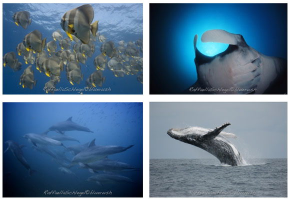 Durante tutto l’anno Aliwal Shoal offre immersioni strabilianti e incontri unici: squali Zambesi, Martello, piccoli tonni, carangidi e barracuda ma anche pesci tropicali come il pesce balestra clown e i pesci angelo tigrati (Tiger Angelfish), Delfini (bottlenose dolphin), nei mesi da giugno a dicembre balene (humpback whales) , nei mesi da dicembre a aprile lo squalo chitarra (rhyncobatus dijddensis) mentre da giugno a novembre l’appuntamento è con gli squali Toro (Spotted Raggedtooth Shark-Carcharias Taurus) che ogni anno si radunano nei punti di immersione The Cathedral, Raggie´s Cave per riprodursi.