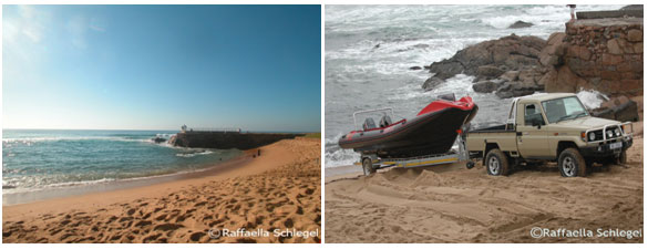 In questo tratto di costa l’unica possibilità di uscita per raggiungere il mare aperto è dalla spiaggia o da estuari dei fiumi a bordo di potenti gommoni.