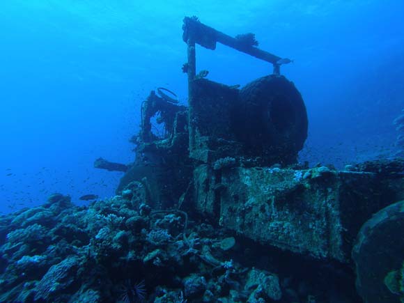 Infatti, sono innumerevoli i veicoli di detta casa automobilistica, sparpagliati sul reef e fuoriusciti dalla nave che li trasportava, al momento del naufragio.