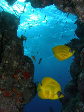 L’atollo corallino propone due imperdibili immersioni, una sulla punta nord ed una in quella posta a sud. Saranno le condizioni del mare a far scegliere l’una o l’altra immersione, od entrambe e mentre nel primo caso sarà possibile l’incontro con gli squali martello che si materializzano dal fondo sulla punta posta quasi a 50 metri, nella seconda è assicurato l’incontro con squali grigi amblyrhyncos, che si nascondono dietro un banco di carangidi e con uno spettacolare banco di grossi barracuda praticamente stanziali.