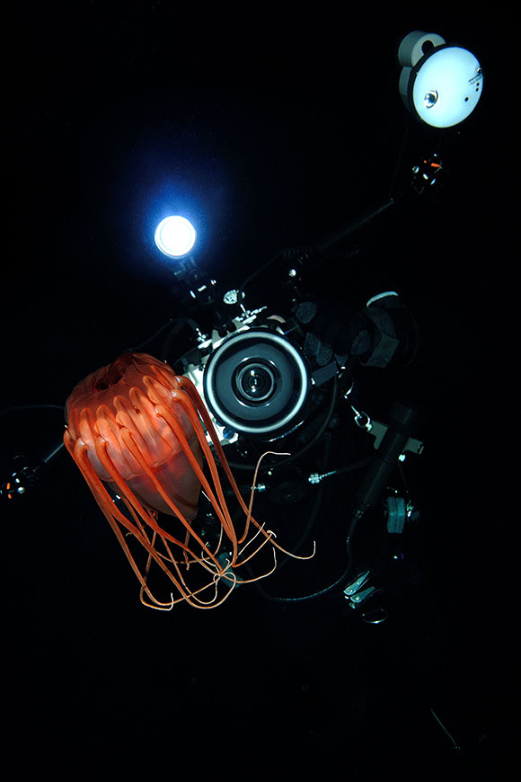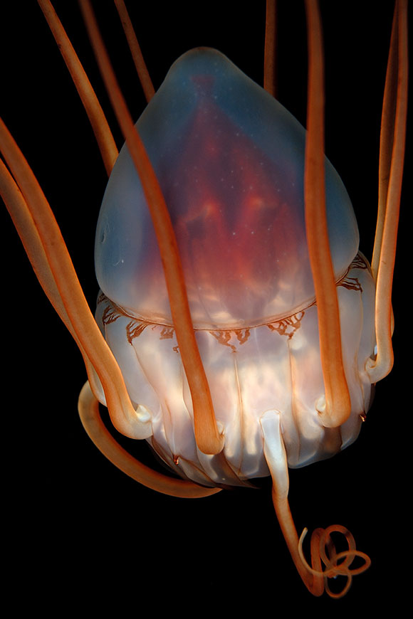 le immersioni notturne con il fondale a 300 metri sotto di voi . La medusa può