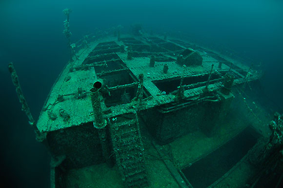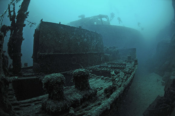 seconda guerra mondiale che non si trova in nessun altro luogo. Il relitto di 5.032 tonnellate è così ben conservato e offre così tante immersioni diverse che la gente ancora torna anno dopo anno solo per vedere di nuovo questa vecchia signora. Il ponte ha piste di 24-34 metri verso la prua della nave e, anche se il tempo di fondo è ottimizzato, sono necessarie molte immersioni per esplorare la sovrastruttura, le stive di carico e l’interno messo a nudo dalla corrosione e dalle deformazioni del tempo.
