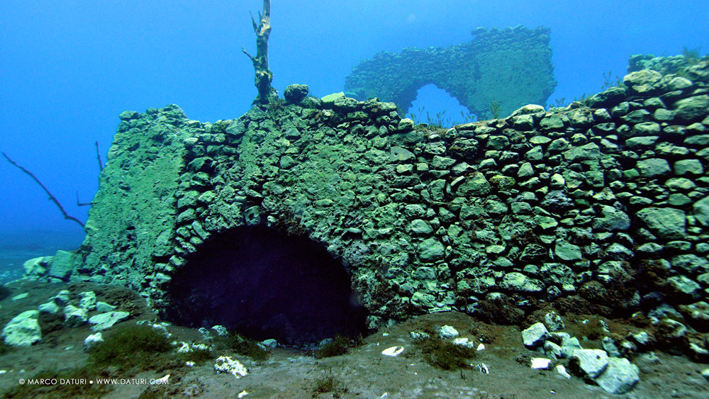 I mulini sommersi, testimoni del passato industriale della zona, riposano ora silenziosamente sotto la superficie, offrendo un paesaggio subacqueo unico per i subacquei. Queste strutture, insieme a tronchi di alberi e resti di vecchie strade, creano un ambiente subacqueo quasi surreale che cattura l’immaginazione e offre una finestra sul passato.