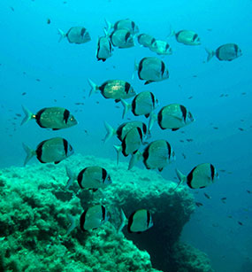 Frequente la presenza di grossi branchi di sarago fasciato.