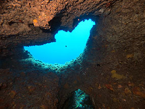 La grotta che da il nome all’immersione ha l’ingresso in superficie che porta ad