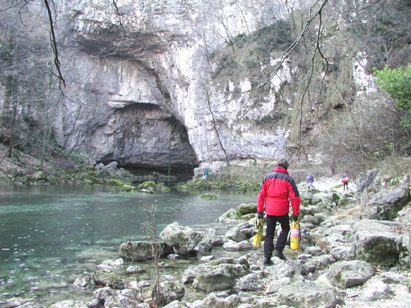 Il giorno 6 febbraio mi trovo di nuovo alle Grotte di Oliero per andare con gli inglesi Rick Stanton e John Volanthen oltre il sifone del Cogol dei Veci.