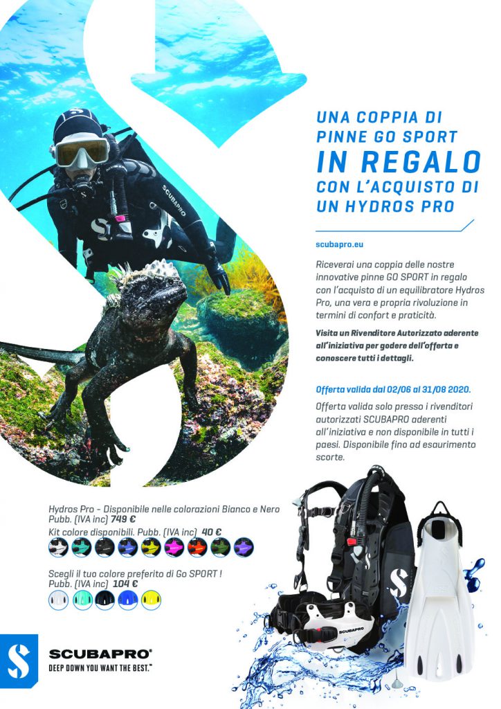 A chi acquista entro il 31 agosto 2020 presso un rivenditore autorizzato il nuovo e rivoluzionario GAV Hydros Pro Scubapro offre in regalo un paio di pinne Go Sport