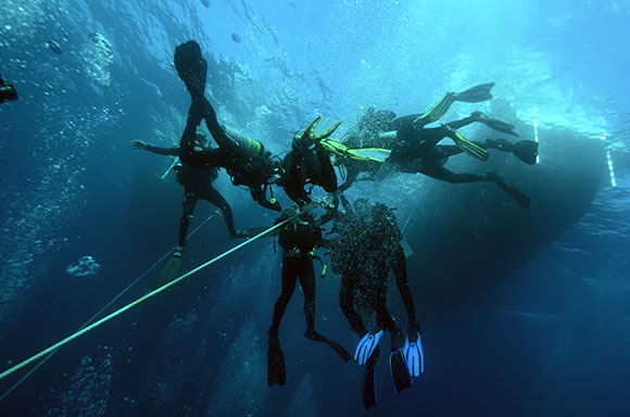 Subacquei durante la deco di sicurezza