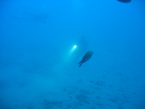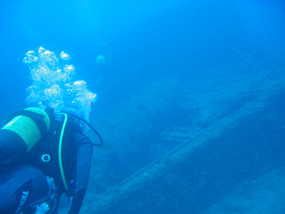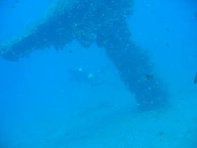 A -20 cominciamo a scorgere la croce del pennone di prua. È sola, isolata su un fondale sabbioso, alla sua base due dei nostri ci fanno, con le lampade, il segnale convenuto. Oltre solo sabbia piatta e Blu Profondo. Cominciamo la discesa, sappiamo che la prua del Laura C è infossata nella sabbia, quindi basta seguire il fondale lasciandoci l’albero alle spalle.