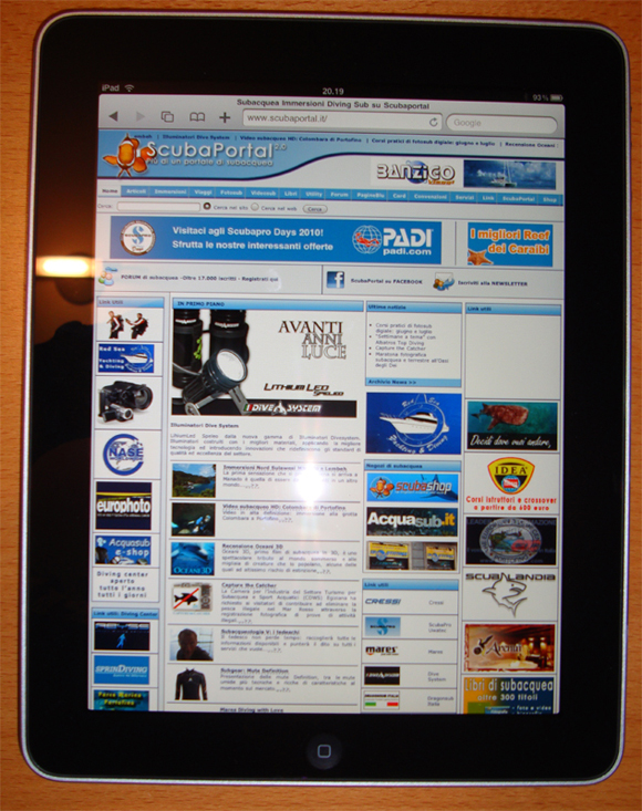 Come per l’iPhone 3 anni prima abbiamo potuto provare in anteprima anche l’iPad (grazie ad un caro amico!)… e con piacere ScubaPortal e tutti i tool collegati funzionano perfettamente con l’unico limite deciso da Apple per le applicazioni flash.