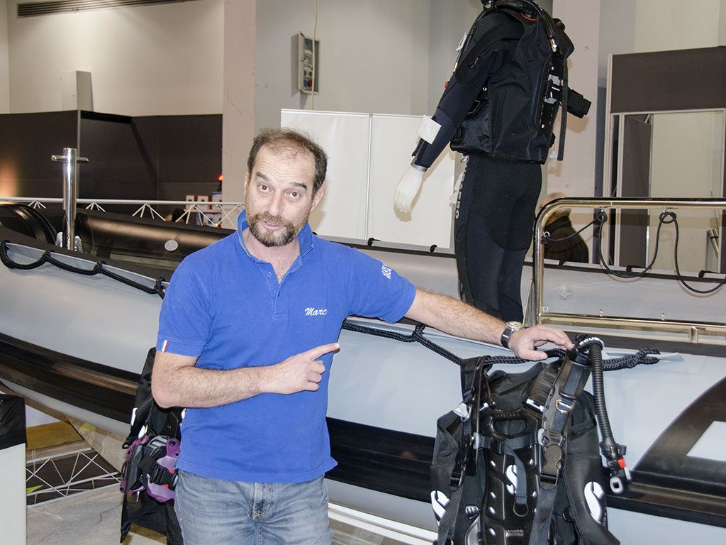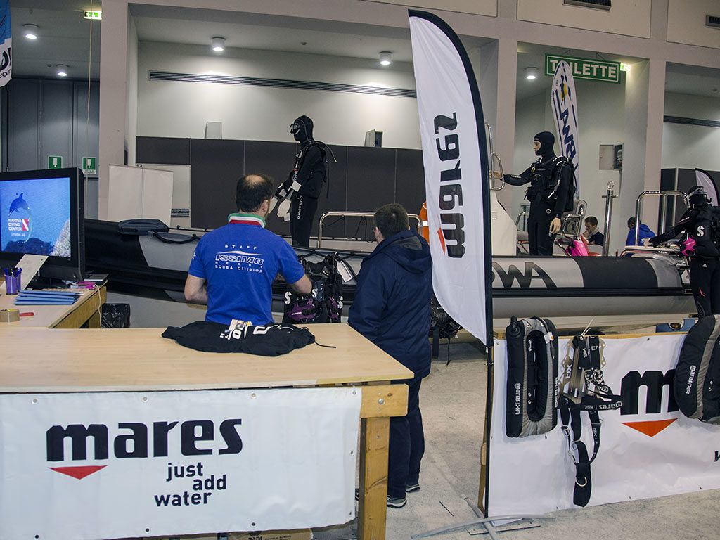 Grandi spazi per i gli stand dei nostri amici, in particolare per Aqua Lung e Issimo con ScubaPro e Mares. Ta gli altri Scuba Light, Y-40 e le Tegnue.