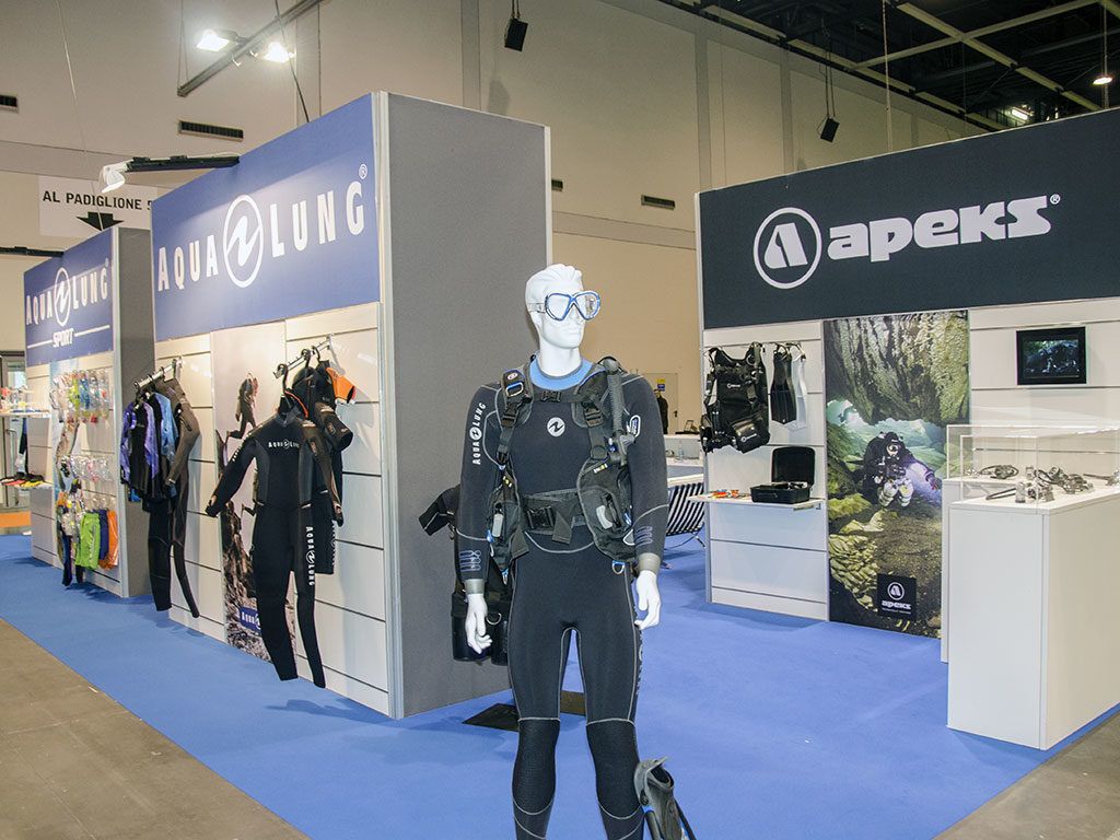 A dominare il padiglione 8 lo stand di Aqua Lung con tutta la gamma di prodotti Aqua Lung, Apeks e Aqua Sphere per il nuoto. Splendido lo stand di Issimo Sport che ha ricreato l’ambiente marino ricoprendo completamente di sabbia il pavimento. All’interno dello spazio ben rappresentate Mares e Scubapro con le principali novità di entrambe le case.