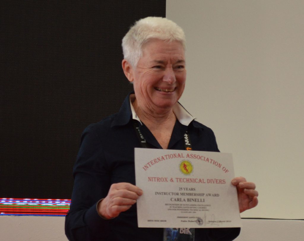 Nel 1972 Carla ottiene la prima certificazione subacquea FIPS e nello stesso anno parte per le Maldive: questa sarà una delle sue più grandi esperienze! Diventa guida subacquea in queste meravigliose isole e a Bandos Island, situata nell’atollo di Male Nord, assiste il pioniere delle immersioni Herwarth Voigtmann nei suoi primi esperimenti sull’alimentazione degli squali e nel campo della biologia marina. In seguito è fra le prime istruttrici subacquee in quelle isole, lavorando successivamente tra Seychelles, Mauritius, Sri Lanka, Egitto e in molti altre località nell’Oceano Indiano, nel Mar Rosso e nel Mediterraneo.