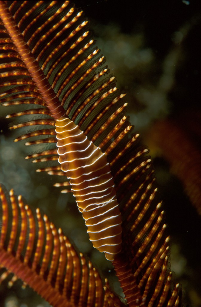 si tratta di un Hypomyzostoma, classe Mizostomi, un verme commensale dei Crinoidi (anche questa è una classe), fotografato appunto sul braccio di un crinoide.