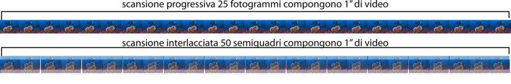 Scansione Interlacciata (i) vengono catturati o trasmessi 25 semiquadri pari e 25 semiquadri dispari ogni secondo per un totale di 50 semiquadri, viene utilizzato sulle Tv standard.