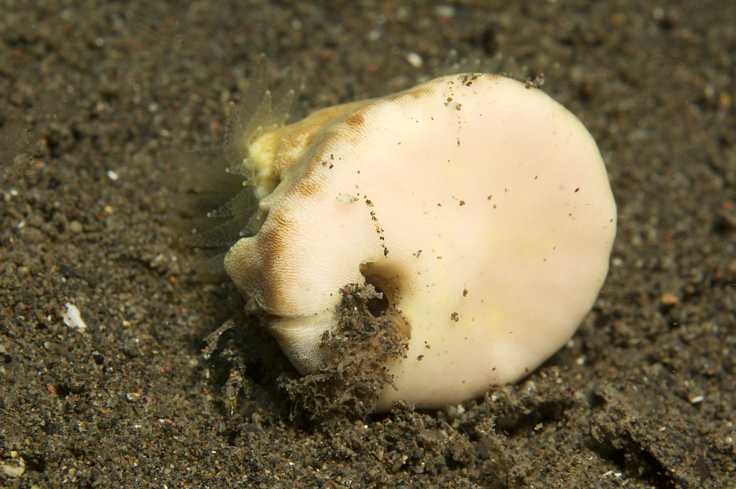Puri Jati, Bali. Un fondo di sabbia nera, prodotta dalle ceneri delle eruzioni vulcaniche, i reef sono lontani. Puri Jati è famosa per i polpi imitatori che fanno capolino dalle loro tane. È famosa per gli scorfani foglia, per i pegasus, per i cavallucci marini… creature della sabbia.