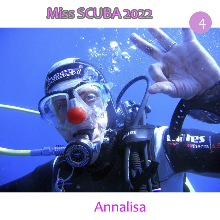 La giuria ringrazia Roberta Vigilanti per la sportività dimostrata, nel venirci incontro nonostante l’inserimento tardivo del suo nominativo nel concorso on line. Questo deve essere lo spirito goliardico di Miss Scuba! Roberta è alla sua terza partecipazione, con 2 vittorie e un secondo posto nel concorso on line. Complimenti.